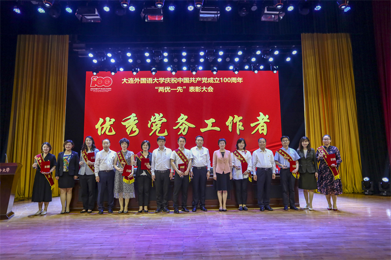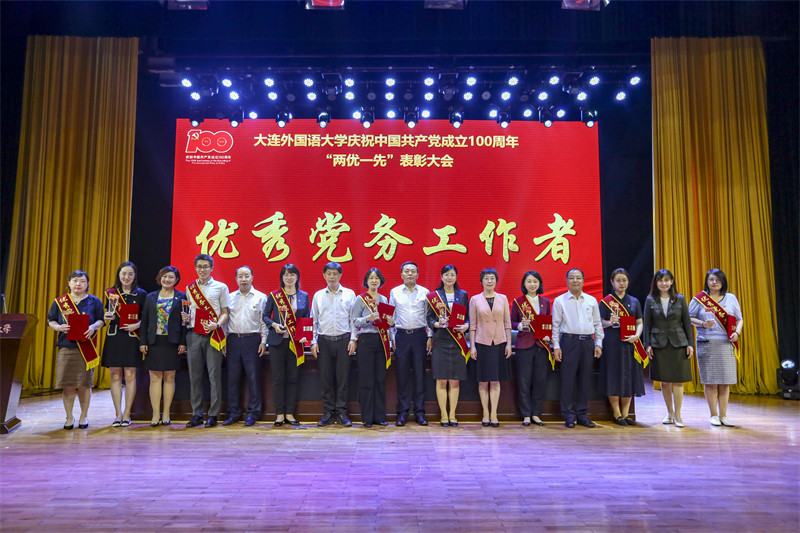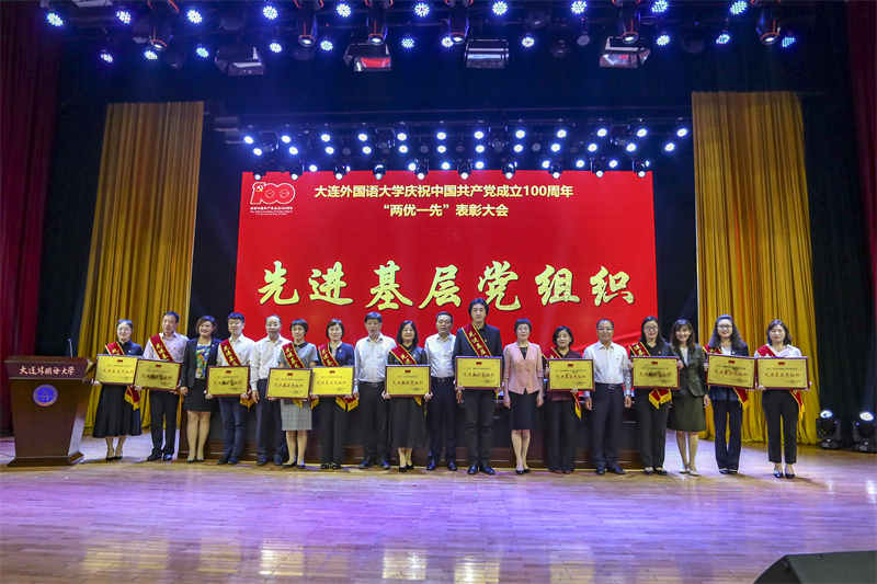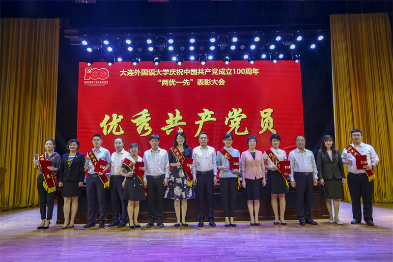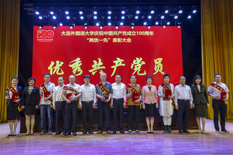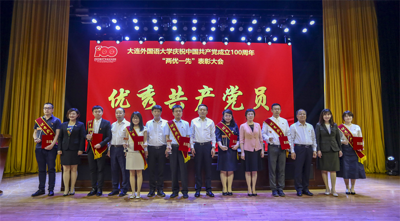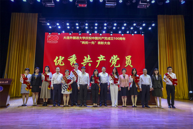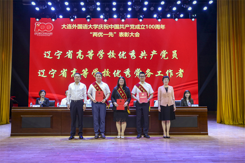 会上,校党委副书记、校长刘宏宣读了《中共大连外国语大学委员会关于表彰优秀共产党员、优秀党务工作者和先进基层党组织的决定》,有37名优秀共产党员、17名优秀党务工作者、11个先进基层党组织获得了表彰;通报了我校在省委、省委教育工委“两优一先”表彰中获奖情况,学校党委受到辽宁省委表彰,获“辽宁省先进基层党组织”荣誉称号;在辽宁省委教育工委表彰中,2名党员获“辽宁省高校优秀共产党员”荣誉称号,1名党务工作者获“辽宁省高校优秀党务工作者”荣誉称号,学校党委获“辽宁省高校先进基层党组织”荣誉称号;通报了我校77名老党员荣获中共中央颁发“光荣在党50年”纪念章情况。