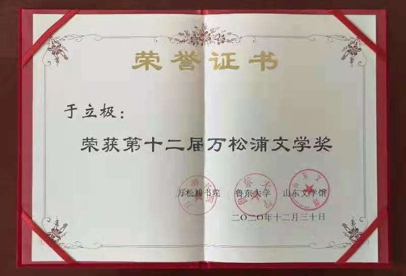 于立极的长篇小说《完美子弹》获得第十二届“万松浦文学奖”,全国共五人获奖。“万松浦文学奖”设立于2008年,是面向世界华语写作的年度文学奖。该奖项倡导新思维和新语境,追求新气象和新高度,以其纯正、端严的品质,赢得了海内外的广泛关注。自创办以来,吸引了众多华语作家的参与,产生了重要影响。(于立极)