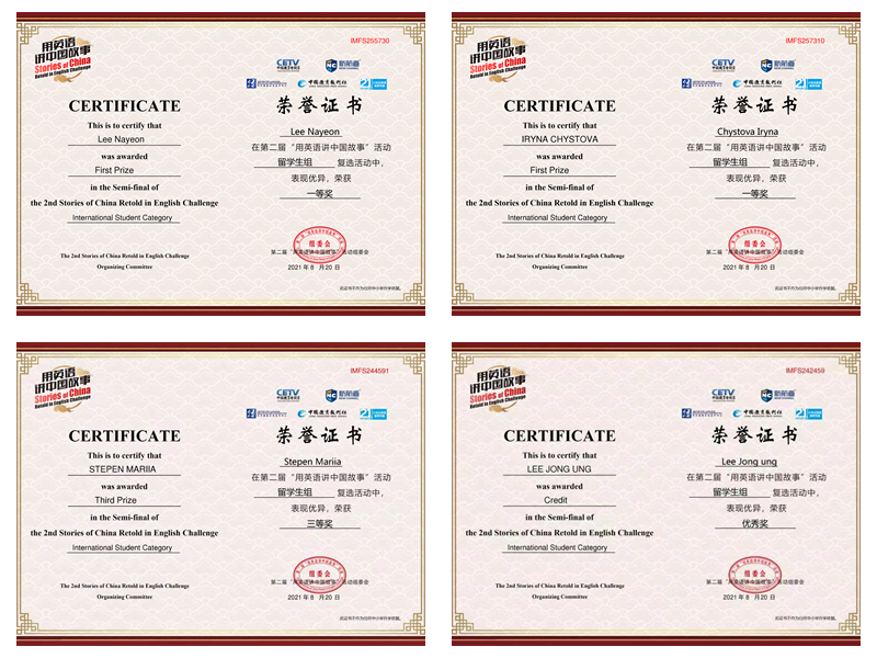 近日,由中国教育电视台、中外语言交流合作中心、中国教育报刊社、新航道国际教育集团等机构联合举办的第二届“用英语讲中国故事”活动受到了来自全球青年的广泛关注,来自100多个国家的800余名选手相聚“云端”,共话中国故事,我校国际学生积极参与了本次赛事并取得佳绩。