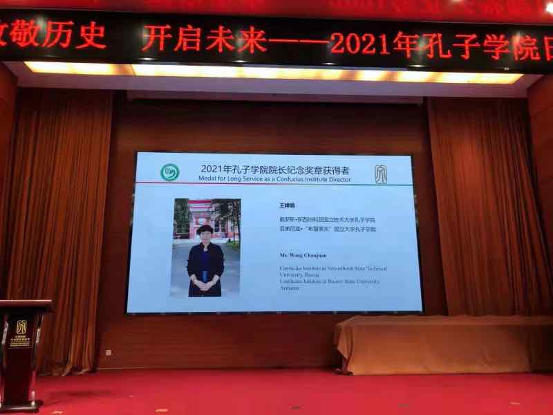 9月27日,中国国际中文教育基金会主办的主题为“致敬历史,开启未来”的“孔子学院日”活动在北京顺利举办,全球孔子学院通过线上共同参与庆祝这一节日。中国国际中文教育基金会理事长、中国科学院院士杨卫出席活动并为75位在孔子学院任职超过10年的中外方院长颁发“孔子学院院长纪念奖章”。我校教师王婵娟作为一名见证了孔子学院14年发展壮大历程的老孔院人,获得此项殊荣。