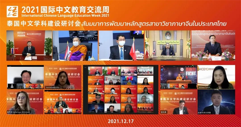 12月17日上午,由中外语言交流合作中心(以下简称“语合中心”)和北京语言大学共同主办的2021年泰国中文学科建设研讨会在线举行。语合中心主任马箭飞、泰国高等教育与科研创新部次长思瑞拉·宋斯维莱、北京语言大学校长刘利、清迈皇家大学校长查里·马尼哥松、泰国海上丝路孔子学院理事会主席颂德通猜副僧王出席开幕式并致辞,中泰两国35家高校、机构参加会议。我校副校长姜凤春应邀参会并发言,我校国际交流与合作处、孔子学院工作处、亚非语言学院、汉学院一同参加了此次会议。