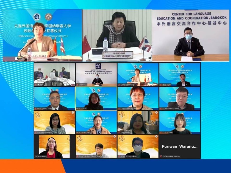 刘宏校长在致辞中表示,非常高兴与纳瑞宣大学相聚云端共同签署合作协议,她向甘嘉娜·奥朗习校长及其工作团队为促成两校合作所做的工作表示感谢,向语合中心-曼谷中心为两校合作提供宝贵契机与平台致以诚挚的谢意。刘校长从建校历史、专业设置及国际化办学特色等方面详细介绍了我校情况。她说,泰国是我国的友好邻邦,近年来,我校与泰国高校在人才培养、师资培训、人文交流等领域开展了积极合作。为服务中国与东盟对话机制提供智力支持与人才保障,我校开设了泰语专业,依托我校国际化办学特色,积极探索与泰国友好院校高起点培养泰语国际化人才。在语合中心-曼谷中心的支持与指导下,我校与纳瑞宣大学共同加入“中泰高校语言伙伴计划”,她表示对两校合作充满期待,希望双方未来开展多层次多领域的合作。最后,刘校长诚挚邀请纳瑞宣大学在疫情平稳后到访我校开展丰富的线下交流。