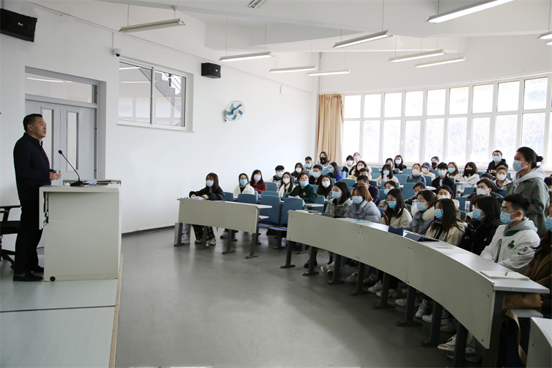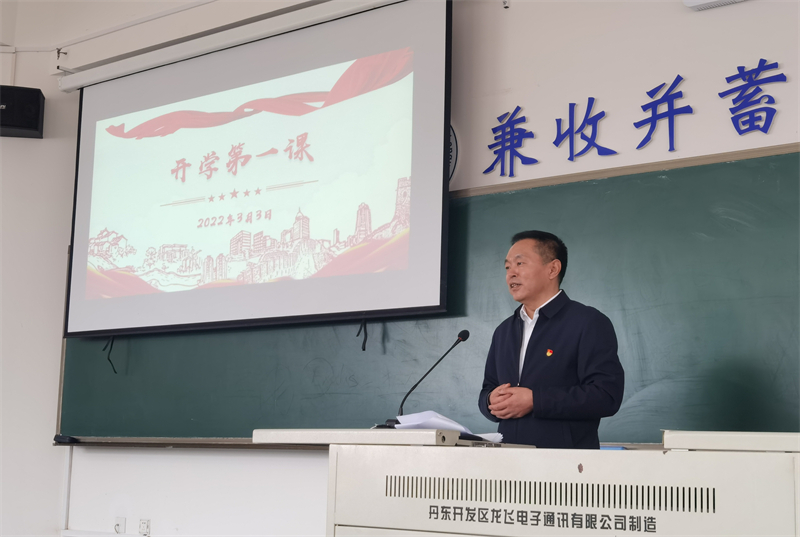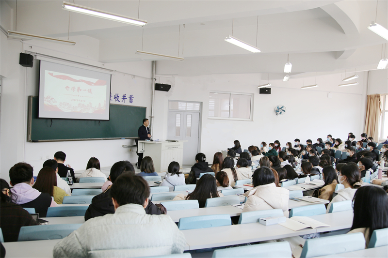为全面贯彻党的教育方针,落实立德树人根本任务,培养德智体美劳全面发展的社会主义建设者和接班人,以不负时代、勇毅前行的奋进姿态开启2022年春季学期新征程,3月3日,大连外国语大学2022年春季学期“开学第一课”在明德楼205教室进行,校党委书记王伟辰以《习近平新时代中国特色社会主义思想是党和国家必须长期坚持的指导思想》为题,为学校本科生开启“习近平新时代中国特色社会主义思想概论”课教学。