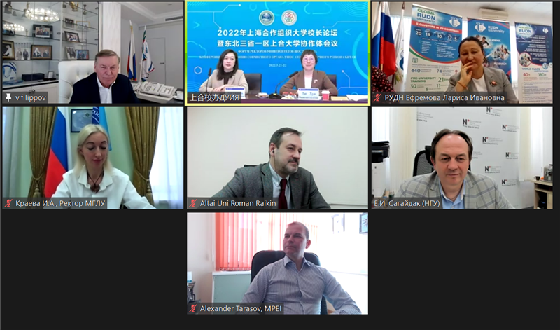 随后,俄罗斯人民友谊大学、莫斯科国立语言大学、塔吉克斯坦斯拉夫大学、吉尔吉斯比什凯克人文大学、兰州大学、华北电力大学、大连外国语大学的七位校长,围绕“上海合作组织大学的十年:合作与发展”这一主题,分别进行了主旨发言。