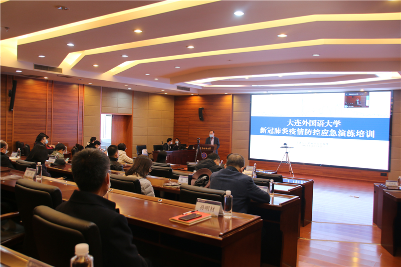为认真贯彻落实党中央、国务院关于疫情防控决策部署和省委省政府工作要求,快速反应、及时控制和妥善处置突发疫情,提高防控水平和应急处置能力, 3月26日上午,学校以线上线下相结合的形式召开了疫情防控应急演练培训会。校党委书记王伟辰、副校长丛明才,住校的学校疫情防控工作领导小组负责人、相关部门负责人、各二级学院党政负责人及辅导员于承志楼601会议室参会。校长刘宏、校外学校领导及科级以上领导干部、辅导员通过线上视频形式参会。会议由副校长丛明才主持。