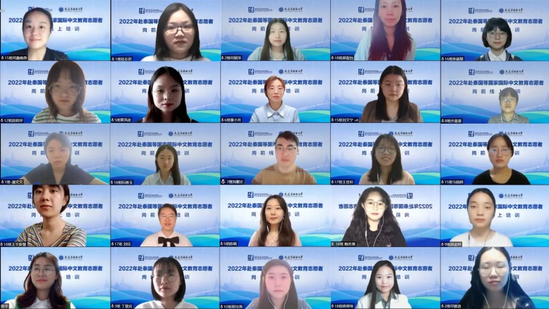 5月5日,2022年赴泰国等国家国际中文教育志愿者岗前培训开班仪式在线上举行。我校副校长姜凤春、教育部中外语言交流合作中心志愿者工作处处长周卉出席仪式并致辞。我校相关部门负责人以及来自中国人民大学、南京大学、南开大学、四川大学、山东大学等105所学校和机构的380余名国际中文教育志愿者共同参加了本次开班仪式。