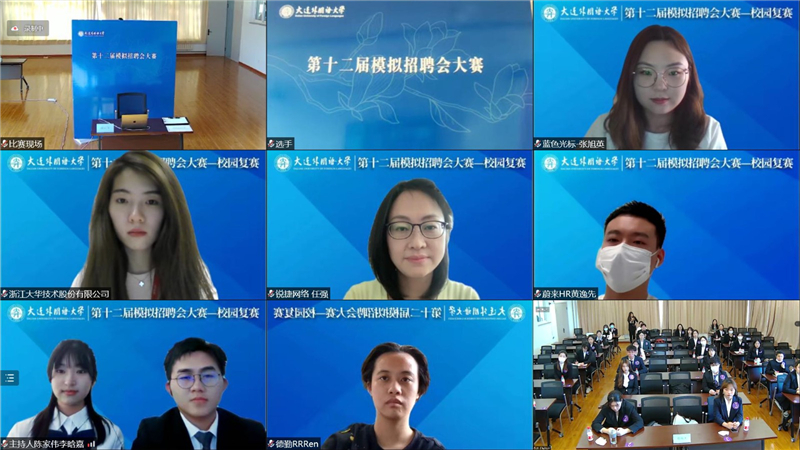 5月20日下午,我校第十二届模拟招聘会大赛校园总决赛通过腾讯会议平台举行。招生就业处、部分学院主管就业工作领导、辅导员及学生代表近500人观看了比赛。