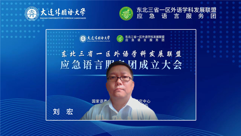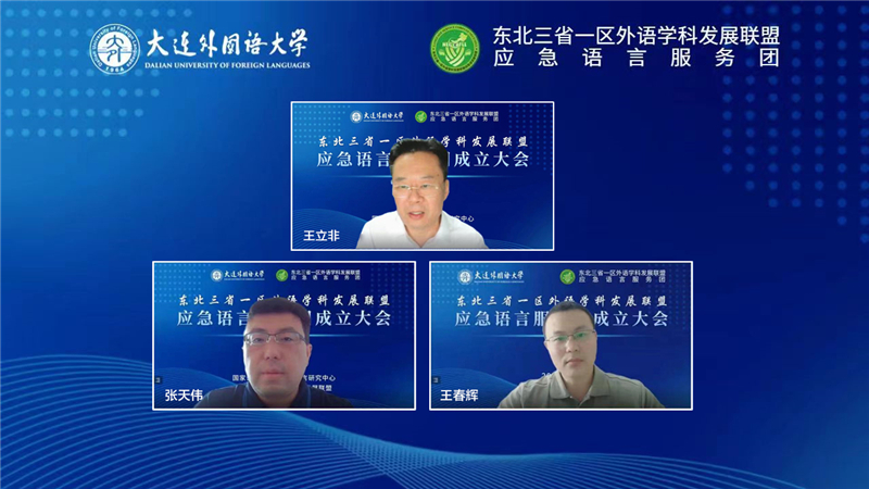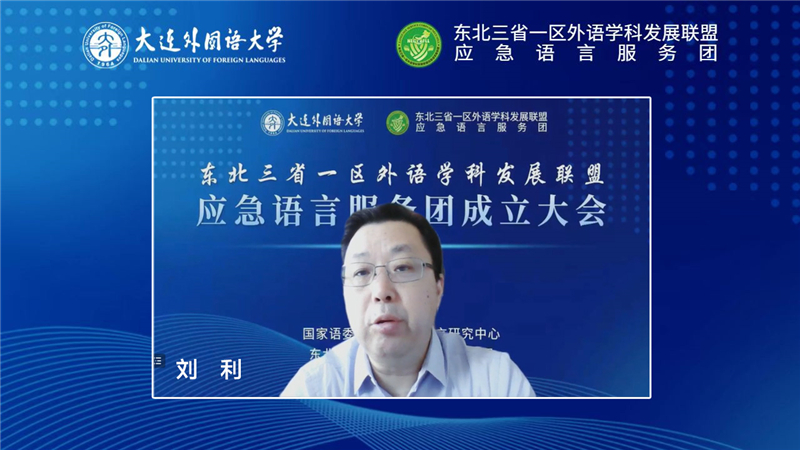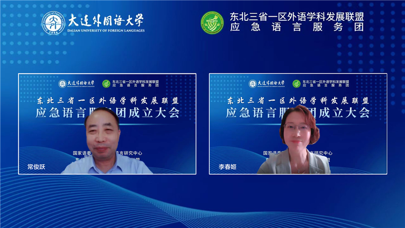 在全体参会人员的共同见证下,东北三省一区外语学科发展联盟应急语言服务团正式启动成立。东北三省一区外语学科发展联盟应急语言服务团是由大连外国语大学倡议发起,由志愿从事应急语言服务的联盟高校自愿组成的公益联盟组织,主要针对东北三省一区各类突发公共事件应急处置及国家其他领域重要工作中急需克服的语言障碍,提供国家通用语言文字、外国语言文字等方面的语言服务。