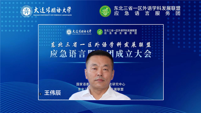 我校党委书记王伟辰在致辞中表示,党和国家事业发展对应急语言服务需求日益增加,对应急语言服务优秀人才的需要比以往任何时候都更为迫切,我校愿同应急语言服务团成员高校一道努力,共同展现新时代外语学科的担当,共同推进东北三省一区应急语言服务事业的发展,满足我国日益增长的应急语言服务需求,展现语言文字服务能力与民族复兴、世界发展同频共振的广阔胸怀,为解决全人类共同面对的机遇与挑战、促进民心相通与文化互鉴贡献力量。