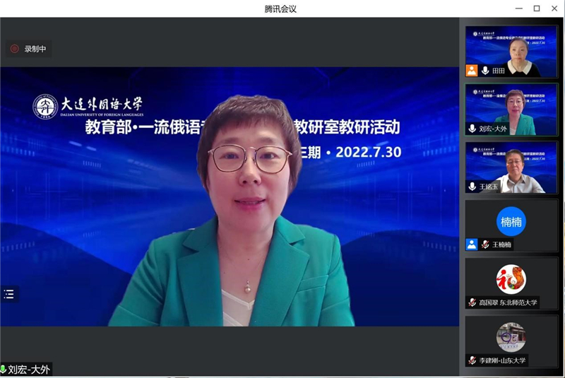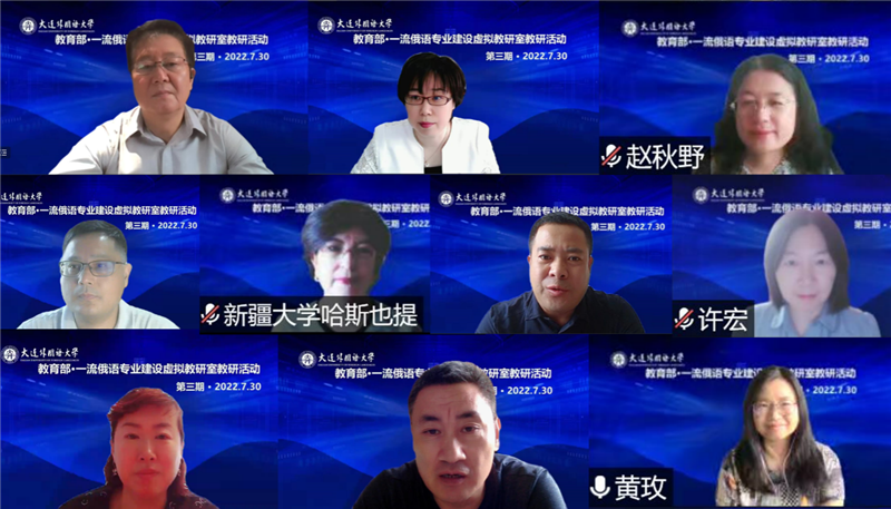 俄语专业虚拟教研室已于2022年5月28日和7月2日成功举办了两期教研活动,此次举办的第三期教研活动为我校与全国各兄弟院校就一流俄语专业建设继续深入研讨和互鉴互学提供了宝贵的交流平台。希望通过大家的共同努力,逐步让俄语专业虚拟教研室成为广大一线俄语教师的交流社区、精神家园,助力提升俄语教师的教学、教研和教书育人能力,为俄语教育高质量发展、数字化发展提供有力支撑,为提高俄语专业人才培养质量筑牢基础。(王楠楠)