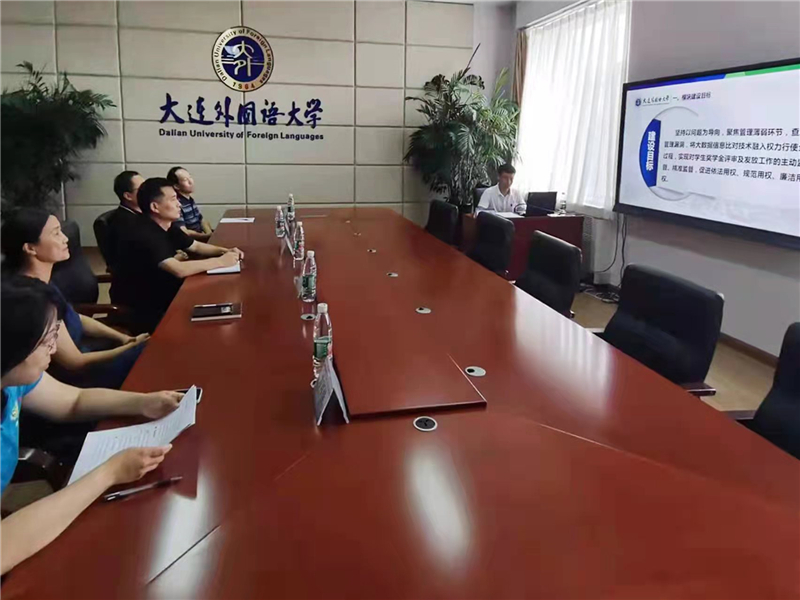 会上,张晓臣代表学校党委向前来我校指导工作的于广滨表示热烈欢迎,向省纪委监委对我校各项工作的大力支持和信任表示感谢,对学生奖学金大数据监督建模试点工作的开展情况及取得的阶段性成果做了简要介绍。纪委副书记王冬梅、信息技术中心主任李富宇分别从模块设计逐步推进情况和专业技术角度做了汇报交流。校纪委综合监察室副主任方可佳与信息技术中心李峰协同讲解并演示了学生奖学金监督模块总体情况。