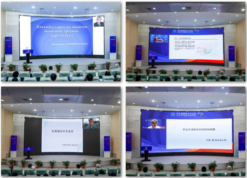 蒙古国立大学教授、蒙古国科学院院士特木尔陶高介绍了13至16世纪的蒙古木版画、书法和碑文使用的文字等,并就目前已知的蒙古文古代碑刻进行了详细阐释;北京语言大学教授李宇明指出,东北亚地区在语言文化领域有很多可以合作的课题,期待建立相关学术交流合作机制,共同推进语言研究和语言规划研究;韩国延世大学教授李圭甲阐述了汉字传入韩国的历史时期及当前在韩国的使用状况,介绍韩国汉字教育机构和汉字教育政策变化,并比较了中韩对汉字的使用差异;日本名古屋大学教授丸尾诚阐述了学习汉语等的重要意义,并强调指出为真正了解其他国家的现实、尊重其文化习俗,学习该国的语言必不可少。