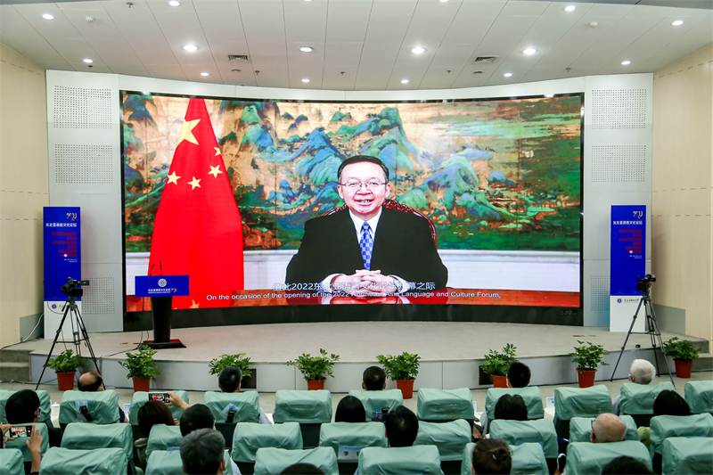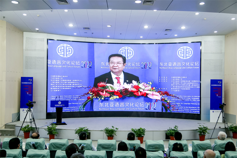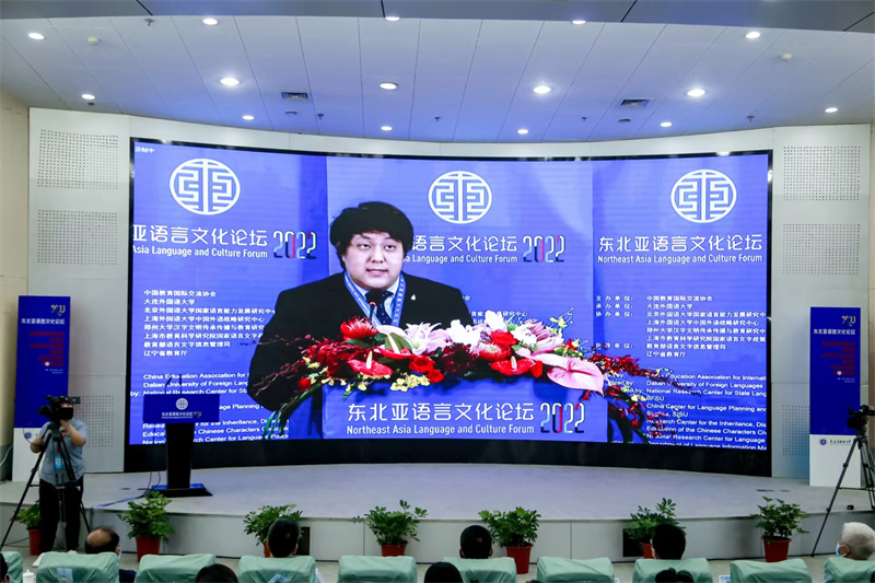 8月25日,以“东北亚语言文化多样性与文明交流互鉴”为主题的2022东北亚语言文化论坛在大连外国语大学召开。论坛由教育部语言文字信息管理司和辽宁省教育厅共同指导,中国教育国际交流协会主办,大连外国语大学承办,北京外国语大学国家语言能力发展研究中心、上海外国语大学中国外语战略研究中心、郑州大学汉字文明传承传播与教育研究中心和上海市教育科学研究院国家语言文字政策研究中心协办。本次论坛设置大连和北京会场,是首次面向东北亚国家举办的高层次语言文化论坛,东北亚国家政府部门代表、驻华使节、专家学者等300余名嘉宾线上线下齐聚一堂,为保护东北亚语言文化多样性、推动东北亚文明交流互鉴、共建东北亚语言文化学术共同体提供智慧和方案。