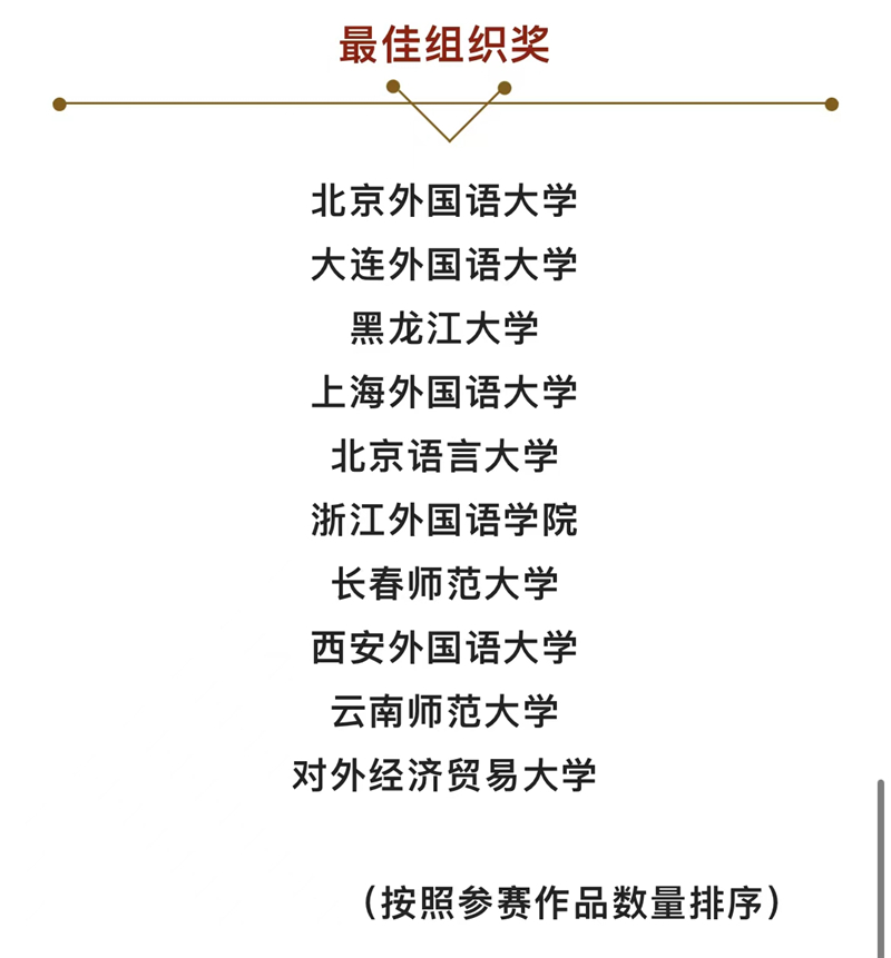 该项赛事属于全国性年度翻译比赛,旨在促进“一带一路”走深走实,加强我国与阿拉伯国家的联系与合作、国际传播能力建设,培养高素质阿拉伯语翻译人才,更准确生动地向世界讲好中国故事。本次大赛于2022年7月初开赛,经初评和终评评分和网络投票,大赛结果于9月揭晓。(陈汝沛)