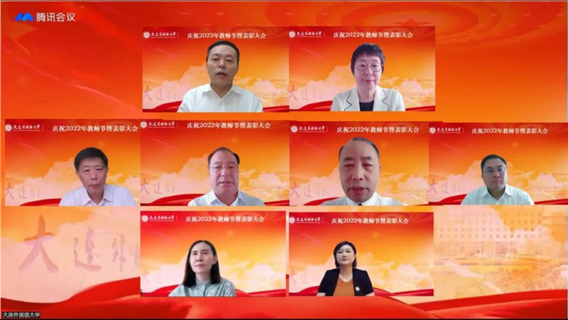 会上,大外学子用11种语言为全体教职员工送上云端祝福。副校长姜凤春宣读关于表彰2020-2022年度“两优一先”及疫情防控工作先进集体、优秀教育工作者的决定。副校长丛明才宣读获得国家级、省级、市级、校级奖励名单。副校长常俊跃宣读2021-2022学年度获批省级以上科研项目和教师教学比赛获奖名单。