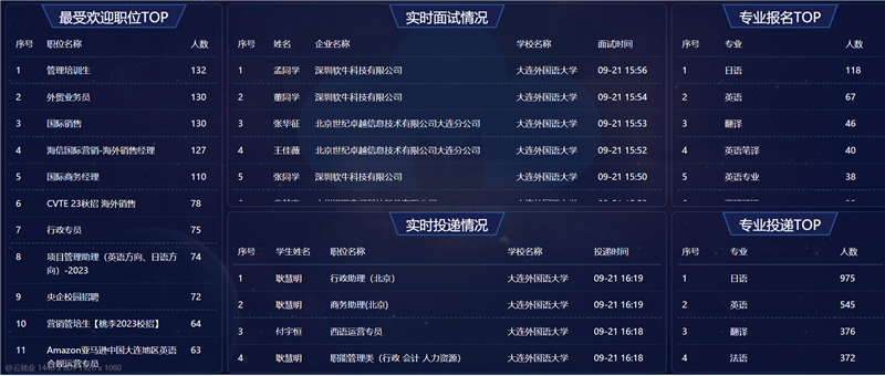 为了帮助同学们更好的了解就业形势,树立良好的职业价值观念。本次视频双选会邀请深圳迈瑞生物医疗电子股份有限公司国际销售工程师文诗琪开展医疗行业讲座,中央广播电视总台CGTN西班牙语频道新媒体主编孙霄开展媒体行业讲座,大连市创业导师、GCDF职业生涯规划师宋文开展就业特色讲座,帮助求职毕业生树立正确的职业价值观念,对行业有更多的了解;能够在面试时展现更加自信的风貌,自如地应对考核。非毕业年级在校生也积极参与活动,体验职场环境,学习职场技能。