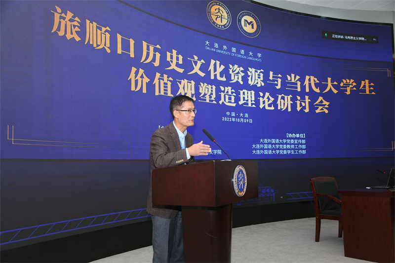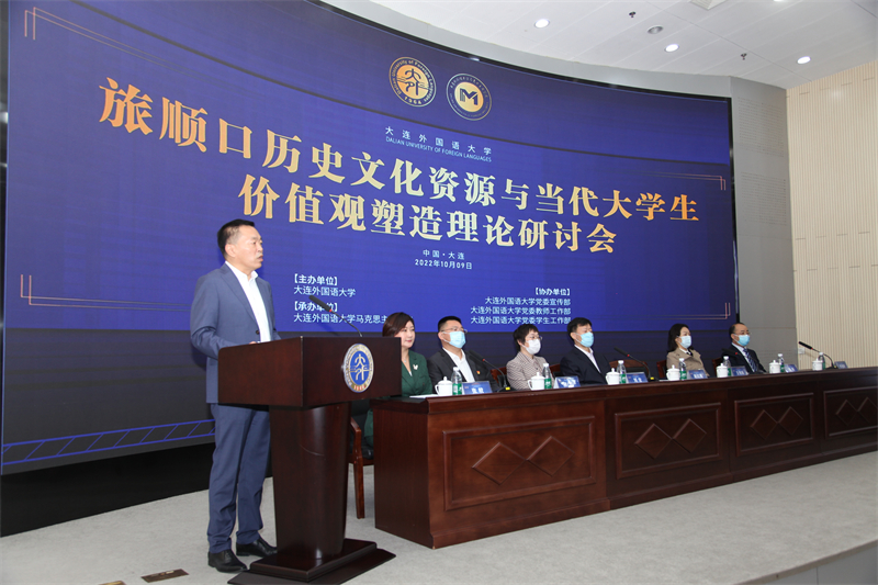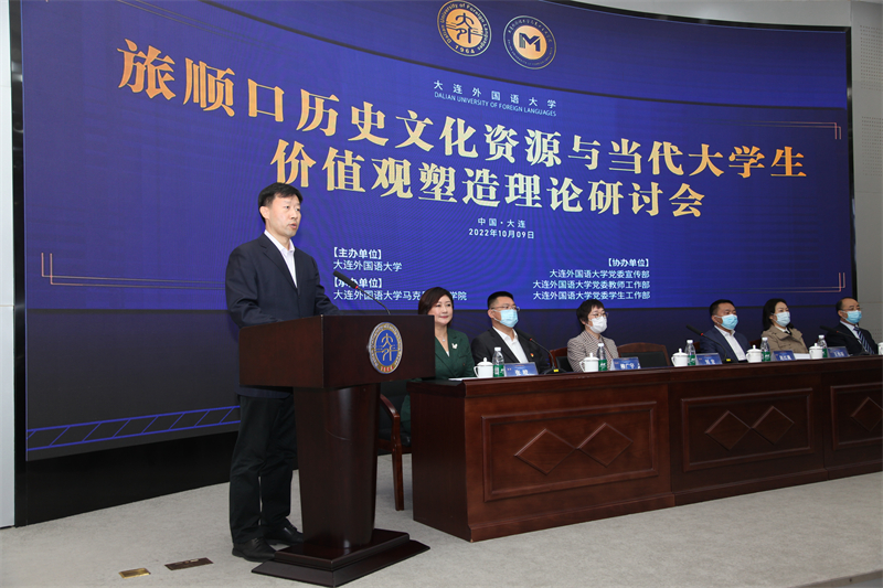 10月9日,由我校主办的“旅顺口历史文化资源与当代大学生价值观塑造理论研讨会”在图书馆报告厅成功举行。旅顺口区委书记赵红巍,大连市委宣传部副部长霍燕,旅顺口区委常委、宣传部部长、统战部部长柳广宇,大连市委宣传部文化体制改革和发展办公室主任吴嵩崎,大连外国语大学党委书记王伟辰、校长刘宏、副校长常俊跃出席会议,辽宁省委教育工委宣传部部长、省教育厅思政处处长胡承波线上致辞。来自省内二十余所院校、文旅单位的相关领导、专家学者以及大外教师代表等百余人参加了研讨会。会议开幕式由校党委常委、宣传部部长张皎主持。