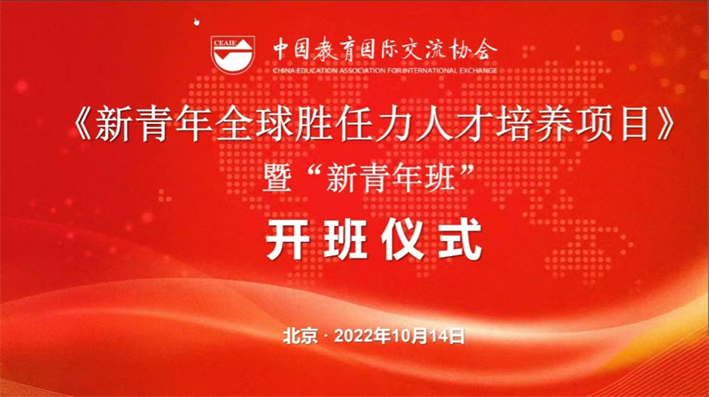 “新青年全球胜任力人才培养项目”是由教育部中国教育国际交流协会主办,面向国内高校学生设立的新时代青年综合素质与能力培养项目。10月14日上午,2022年秋季“新青年班”开班仪式在北京举行。中国教育国际交流协会副会长兼秘书长王永利,专家指导委员会召集人、北京外国语大学原副校长、中国驻法国使馆前公使衔教育参赞马燕生等嘉宾到场出席了会议。我校副校长常俊跃教授受邀参加线上开班仪式,我校国际交流与合作处及国际关系学院负责人、项目负责教师及全体项目学员进行了在线观摩。