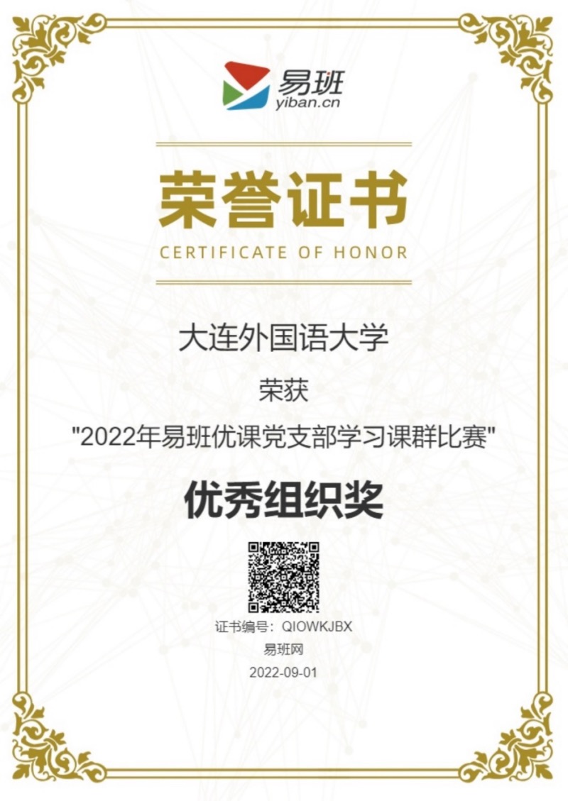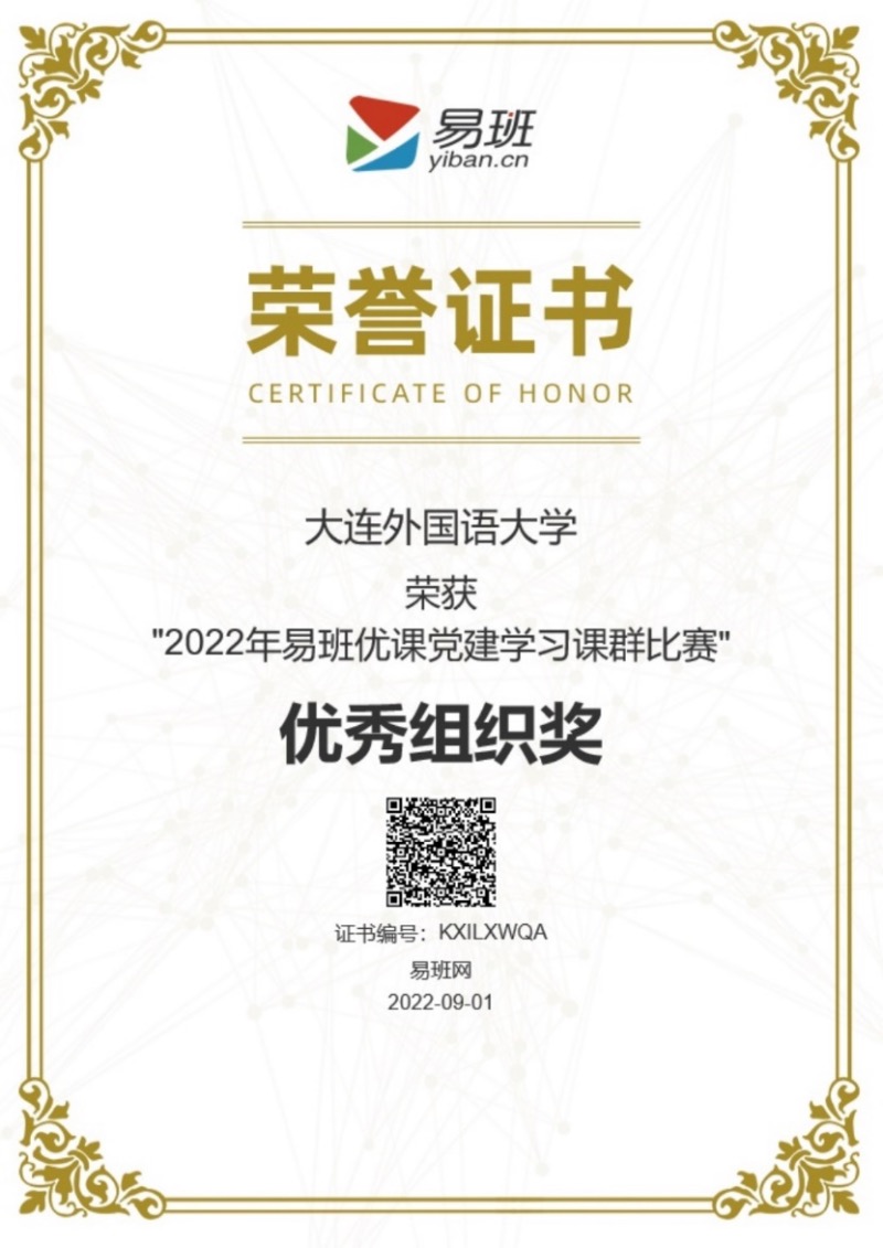 近日,教育部易班发展中心公布了“2022年易班优课党建学习课群比赛”和“2022年易班优课党支部学习课群比赛”活动结果。我校同时荣获两项比赛全国“优秀组织奖”。