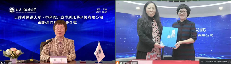 校长刘宏对我校在新文科、数字人文视域下的省级重点实验室建设等方面的工作做了详细介绍。她指出,高科技时代下,外国语大学的发展需要融合数字科技的力量,与中科凡语的合作必将促进双方的共同发展,并为我校新文科建设、语言研究跨学科发展、复合型人才培养等方面插上高科技的翅膀。双方将在平台建设、人才培养、资源共享等方面进行深度合作,将联合共建辽宁省哲学社会科学重点实验室“新文科数字人文创新实验室”、“东北亚语情认知分析平台”、“多语种翻译与语料库建设实训基地”,并联合培养“新文科语言人才”,瞄准国家语言战略需求及数字人文国际前沿,开展语言文学、政治计算、计算机辅助翻译、语情观测、汉语言文化国际传播等方面的合作研究和系统建设。