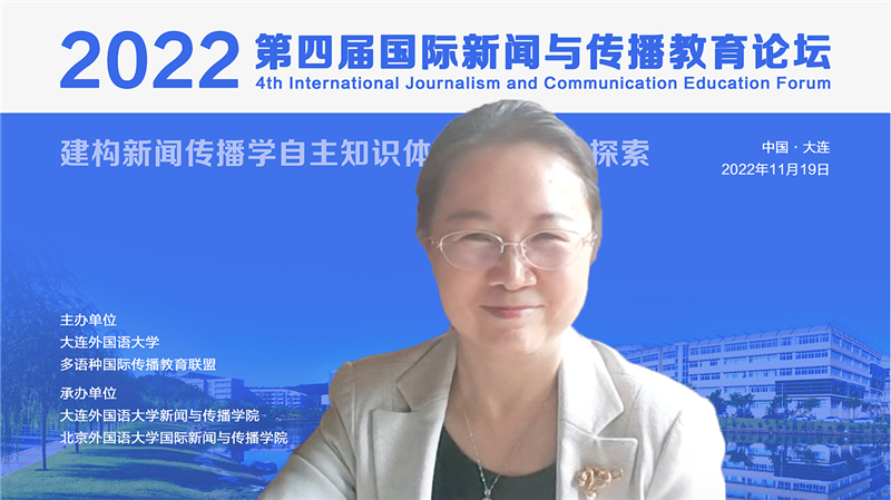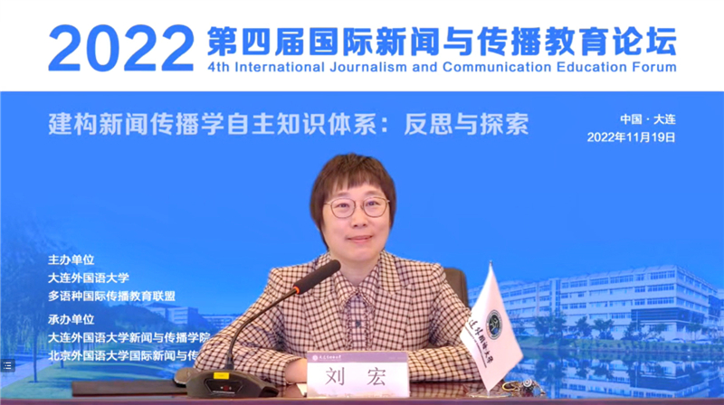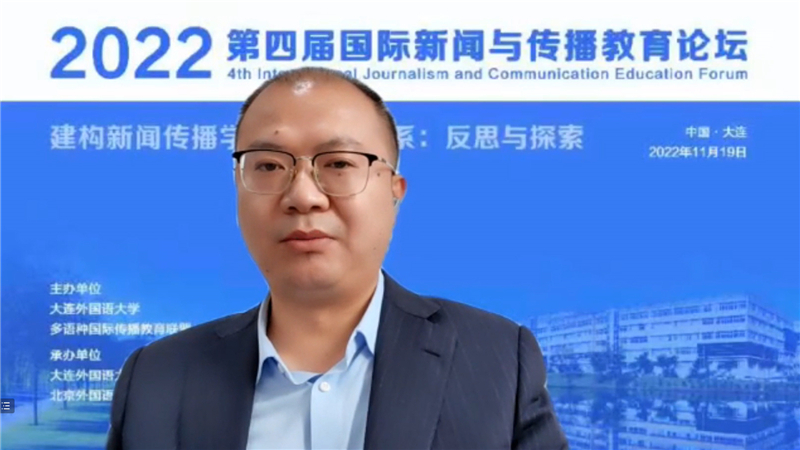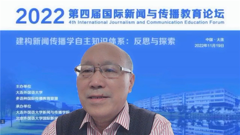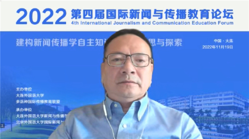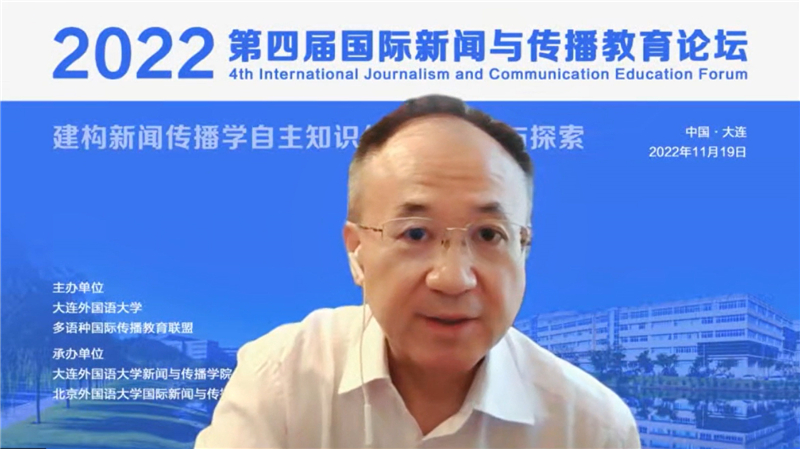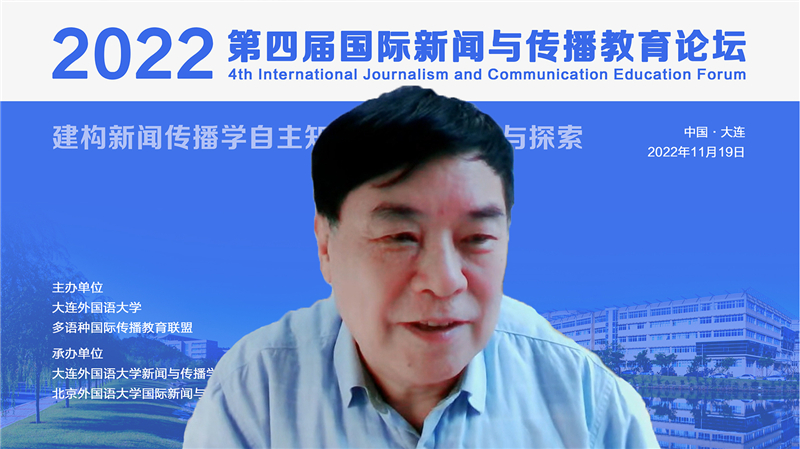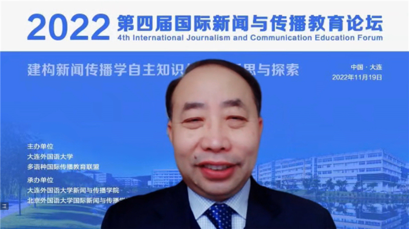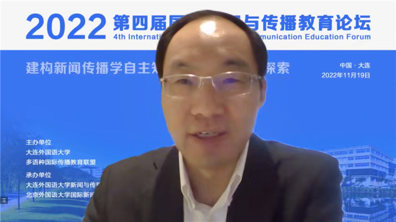 11月19日,由大连外国语大学、多语种国际传播教育联盟主办,大连外国语大学新闻与传播学院、北京外国语大学国际新闻与传播学院承办的第四届国际新闻与传播教育论坛在大连云端召开,会议主旨为“建构新闻传播学自主知识体系:反思与探索”。来自全国高校、科研机构和对外传播管理机构的200余位代表与会,着重探讨新闻传播学自主知识体系的内涵和构建,以及国际新闻与传播教育的改革和创新,力求为推动新闻传播学及国际新闻传播教育的知识创新、理论创新、方法创新做出应有贡献。辽宁省委宣传部外宣综合联络处处长隋鸿刚、中共辽宁省委教育工委宣传部部长胡承波等参加了本次论坛。学术志平台提供直播,千余人在线收看了直播。开幕式由我校副校长常俊跃主持。
