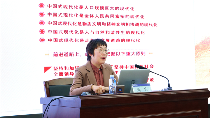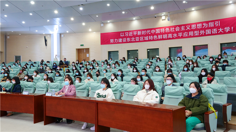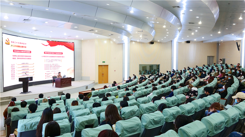 刘宏校长从党的二十大概况、从党的二十大报告看东北和辽宁、从党的二十大报告看高等教育和大外、从党的二十大报告看青年发展四个方面进行了全面宣讲和系统解读。她强调,党的二十大是我国迈上全面建设社会主义现代化国家新征程、向第二个百年奋斗目标进军的关键时刻召开的一次十分重要的大会,学习宣传贯彻党的二十大精神是当前和今后一个时期全党全国的首要政治任务。“五个牢牢把握”是对党的二十大报告最精准的解读、最权威的辅导,为我们学习宣传贯彻党的二十大精神提供了重要遵循。