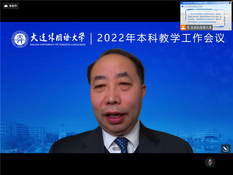 12月14日,我校召开了2022年全校本科教学工作会议。会议主题是深入学习贯彻党的二十大精神,全面落实立德树人根本任务,推进《习近平谈治国理政》多语种版本进高校进教材进课堂(“三进”)工作走深走实,推进新文科建设提质创新;以迎接新一轮本科教育教学审核评估为契机,全面深化本科教育教学改革,推动学校本科教育高质量发展。会议采取线上方式进行。全体校领导,各职能部门和教学单位负责人、教师和学生代表共计300余人参会。