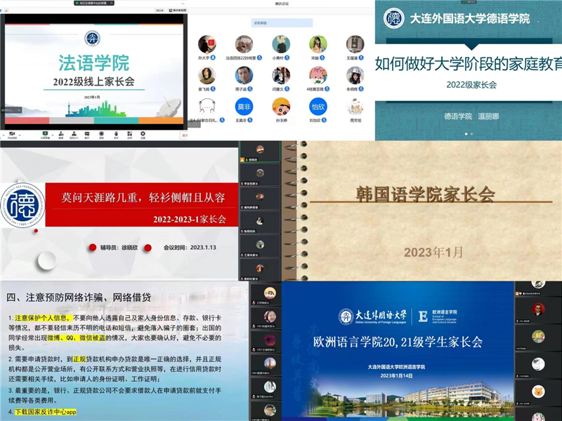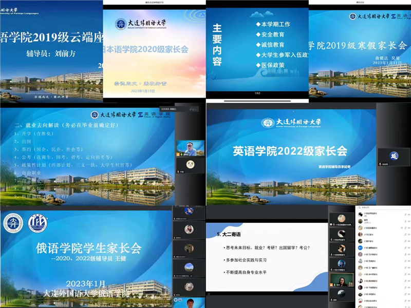 寒假期间,大连外国语大学全体辅导员开展云端家长会60场覆盖全体本科生、实地家访20人次、线上家访140人次,进一步加强了学校和家庭之间的沟通理解,提升了思想政治教育的针对性和实效性,凝聚家校合力构建了学校用心、学生暖心、家长放心的“连心桥”,更有助于学校不断完善创新学生工作的理念和方法,全方位高水平促进学生成长成才。(王佳明)