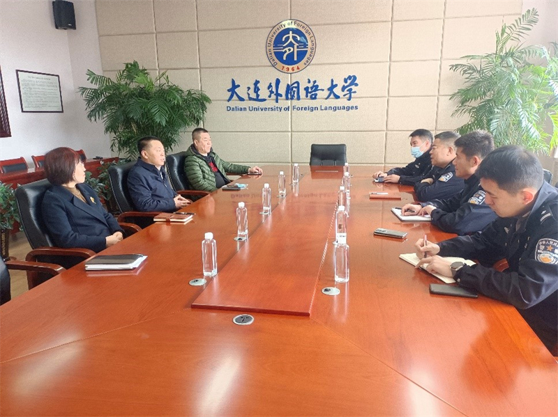 会前,学校党委书记王伟辰在承志楼506会议室同旅顺口区公安分局副局长程祥军一行座谈交流。程祥军副局长对我校近年来反诈防诈工作给予了高度评价,并对我校领导高度重视校园安保工作表示感谢。他表示,公安机关是学校安全稳定的坚强后盾,维护校园安全、和谐、稳定是公安机关义不容辞的责任。他希望双方进一步加强警校联动,为建设平安、和谐、稳定的美丽校园贡献力量。王伟辰书记对旅顺口区公安分局长期以来对我校的支持和帮助表示感谢。他指出,我校高度重视防范电信网络诈骗工作,反诈防诈工作已经纳入辅导员重点工作体系,融入日常、抓在经常、做在平常,采用线上线下相结合方式开展了大量针对性强、实效性好的宣传教育活动。学校将进一步加强与属地公安联系与合作,希望双方在警校共建的平台上感情共融、责任共担、困难共克,努力为广大师生营造和谐稳定的校园环境。