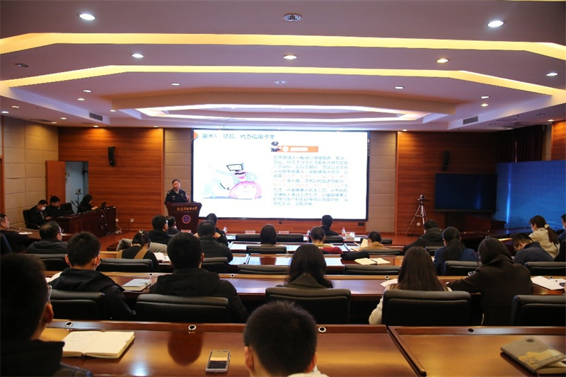 为进一步做好防范电信网络诈骗工作,切实维护广大学生合法权益和财产安全,3月16日上午学校邀请旅顺口区公安分局反诈中心中队长叶致仙警官在承志楼601会议室开展防范电信网络诈骗专题知识讲座,旅顺口区公安分局相关同志、学校相关职能部门负责人、全体辅导员参加本次反诈宣传活动。