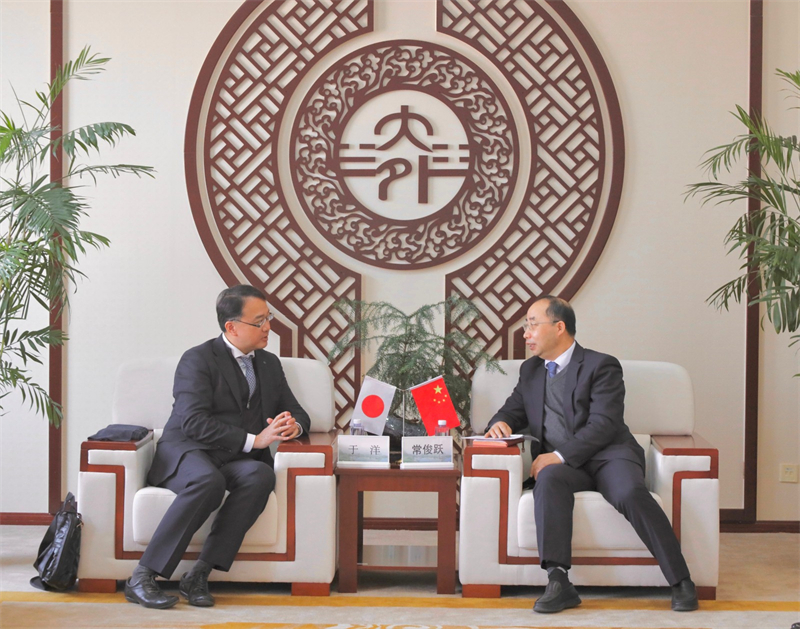 3月29日上午, 副校长常俊跃会见日本城西大学副校长于洋一行。国际交流与合作处、日本语学院、商学院、软件学院负责人一同参加了会见。