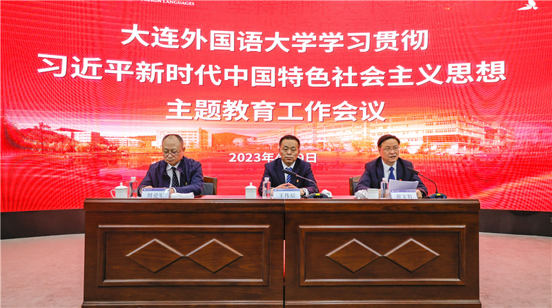 会上,王伟辰结合学校实际,对开展主题教育进行了深入动员。他指出,学校党委深刻理解开展主题教育的重大意义,坚决贯彻中央、省委决策部署,党委常委会第一时间传达学习了习近平总书记在主题教育工作会议上的重要讲话精神,并结合学校实际成立了学习教育领导小组及办公室,研究制定了实施意见。全校各级党组织和广大党员、干部要提高政治站位,切实把思想和行动统一到中央、省委的部署要求上来,以高度的政治自觉、饱满的政治热情、严肃的政治态度,积极投身主题教育。一是要深刻领会开展主题教育是统一全党思想意志行动,始终保持党的强大凝聚力、战斗力的必然要求,紧扣立德树人根本任务,自觉把主题教育作为增强“四个意识”、坚定“四个自信”、做到“两个维护”的大课堂、大熔炉,在思想上政治上行动上同以习近平同志为核心的党中央保持高度一致。二是要深刻领会开展主题教育是推动全党积极担当作为,不断开创事业发展新局面的必然要求,深入实施“专业立校、学科强校、开放兴校、文化育校”四大发展战略,大干三年、奋斗三年,在辽宁全面振兴新突破三年行动中作出大外贡献。三是要深刻领会开展主题教育是深入推进全面从严治党,以党的自我革命引领社会革命的必然要求,锻造一支“讲诚信、懂规矩、守纪律”的党员干部队伍,为打好打赢新时代辽宁振兴的“辽沈战役”提供坚强保障。
