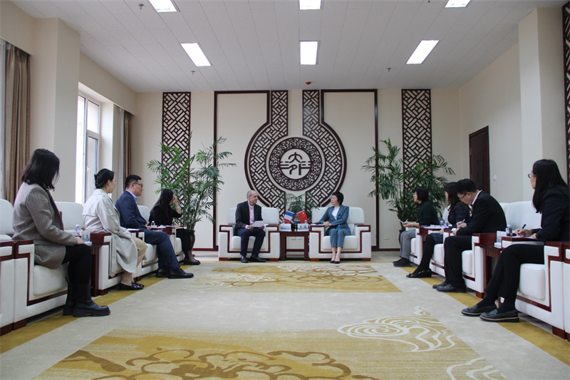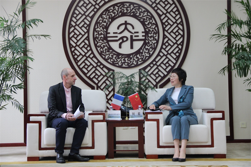 刘宏校长向代表团一行来访表示欢迎,介绍了我校法语专业发展历程、建设成果,并就我校对法高校的教育交流情况、大连法语联盟建设与发展等国际化办学特色及实践进行了介绍。她指出,2023年恰逢我校法语专业创建50周年,半个世纪以来,我校培养的法语专业人才不断创新进取、提升服务能力,成为社会各界的中坚力量。她强调,法国总统马克龙的访华之旅为中法人文交流开辟了新前景、赋予了新动能,期待我校与中法教育交流协会把握机遇,共同谱写教育国际交流的新篇章。