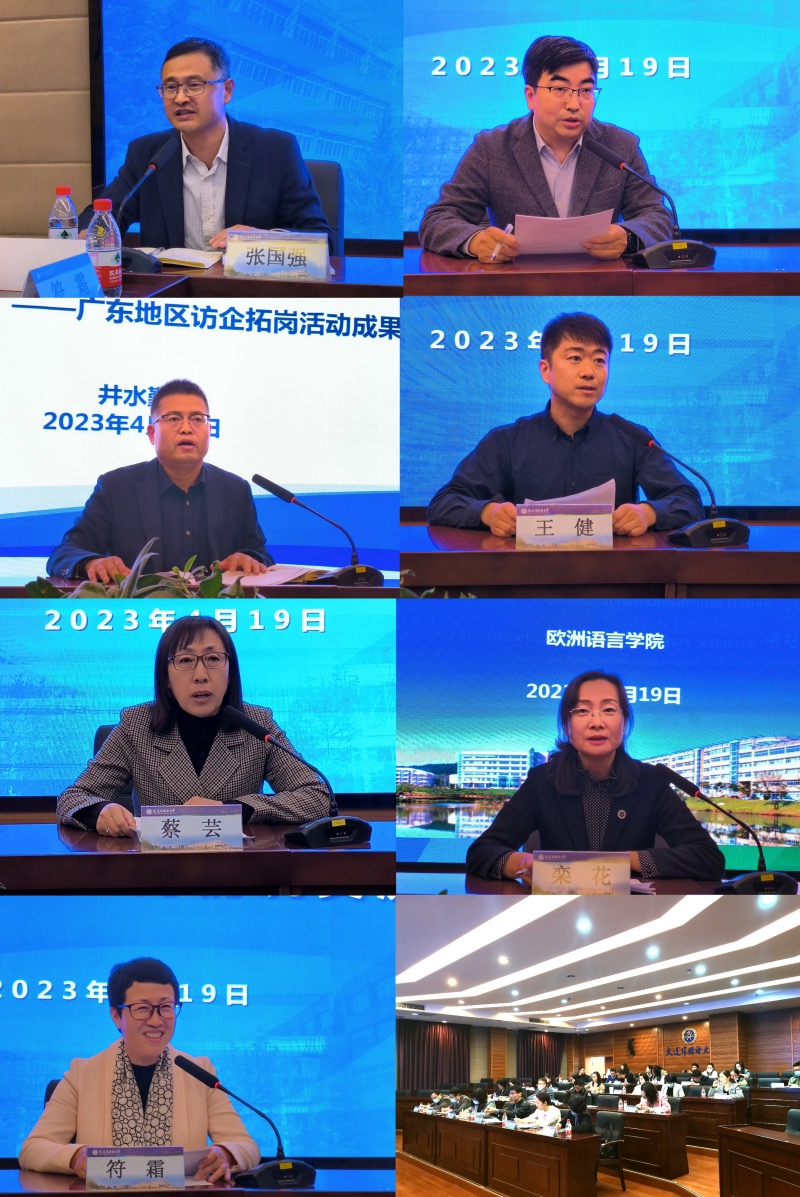 随后,深圳访企拓岗参加人员分享了走访企业的体会及对人才培养的反思。教务处副处长罗米良总结了全球化视野、“外语+专业+技术”复合等用人单位关注的十个人才特征;招生就业处处长井水勤提出人才培养中的学习能力、沟通协调能力、系统性思维能力、快速适应能力、独立解决问题能力等五个能力导向;俄语学院辅导员王健提出需进一步探索第二课堂创新,培养学生可迁移技能和自我管理技能;法语学院党总支书记蔡芸提出需结合就业市场需求,进一步优化专业方向课程模块;欧洲语言学院党总支书记栾花分享了优秀校友案例,提出需加强学生吃苦耐劳精神培养;亚非语言学院党总支书记符霜提出需进一步加强校企实习实践教学合作,重视实践育人。