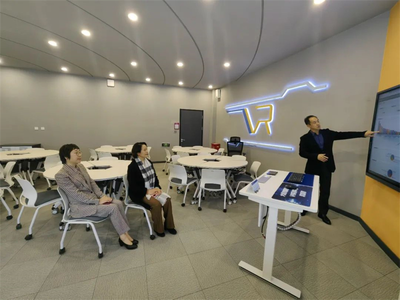 在科教创新基地,一行人参观了可满足中外学生教务管理、生活保障、签证管理、手续办理、事务咨询等多方位需求的一站式服务大厅,走访了学生学业辅导和心理咨询中心、沙盘室、唐风平台录制室以及AI远程智慧教室,并与初次到校报到的越南籍留学生亲切交谈,鼓励学院积极拓宽工作思路,充分利用AI远程智慧教学系统,不断扩大国际学生招生数量,提高国际学生管理和服务水平。