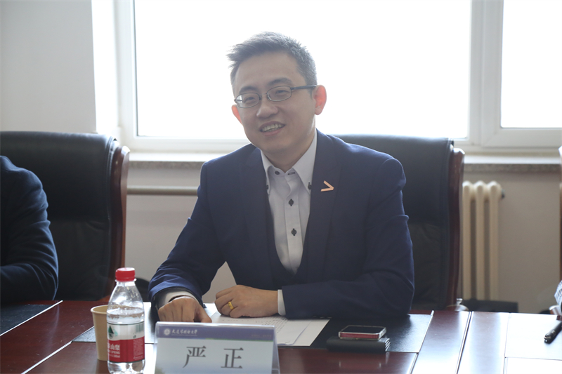严正总经理对埃森哲所在行业发展情况以及校企协同育人情况做了介绍。他表示目前企业与我校保持最为紧密的长期合作伙伴关系,企业转型更加聚焦高端产业链,对学生外语能力以及软能力的要求不断提升,希望在海外人才需求以及人工智能方向开展更深入的交流合作。