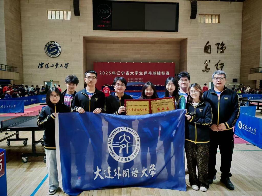 在女子团体比赛中,由我校日本语学院朱芮萱、欧洲语言学院周彦熙、德语学院王安雅、夏雨涵组成的团队,一路披荆斩棘,与40所本科院校同场竞技,最终赢得辽宁省大学生乒乓球锦标赛女子团体第五名。