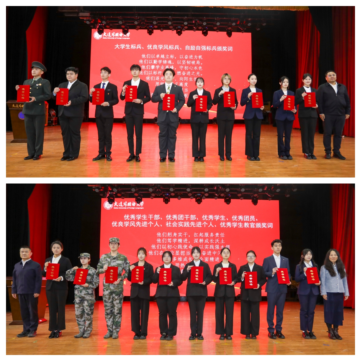 校长丛明才在讲话中对全校同学提出三点希望:一是让语言扎根家国土壤,以初心锚定前行方向。外语是沟通中外的桥梁,要将个人理想融入民族复兴,深耕专业、对接国家需求,做有灵魂的沟通者,讲好中国与辽宁故事。二是以跨界融合拓宽维度,用实力拥抱时代变革。外语人才需“一专多能”,打破学科壁垒,拓宽前沿领域视野,珍惜国际化学习机会,将“融通中外”作为核心竞争力。三是在青春赛道从容前进,让热爱驱动持久奋斗。保持从容心态与热爱,在挫折中成长、合作中进步,劳逸结合,成为有理想、懂生活的大外学子。他强调,此次表彰是耕耘的总结,更是奋进的动员,期望师生们以此次表彰为新起点,以更加饱满的热情、更加昂扬的斗志,共同谋划学校“十五五”发展规划,在建设东北亚区域特色鲜明的高水平应用型外国语大学的道路上并肩前行,在强国建设、民族复兴的伟大征程中贡献大外力量。(陈逸佳 周腾飞 袁菲洋)