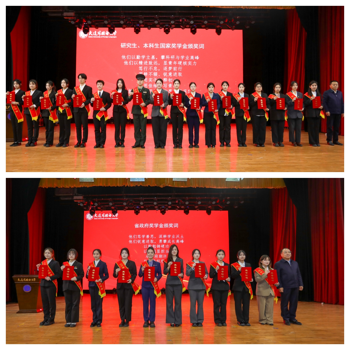 12月17日下午,2024-2025学年度学生先进集体、先进个人表彰大会在启航楼礼堂举行。学校党委班子成员、各职能部门负责人、各学院党政领导、全体辅导员、学生代表以及部分社会类奖学金资助方参加了大会。
