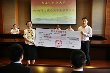 大连东方投资置业有限公司成立于2001年,拥有固定资产近20亿。公司秉承诚信务实、追求卓越的企业文化,历经市场洗礼打造形成了以商业地产开发经营为主营业务板块,兼以物业管理为辅助经营的大型投资置业联合实体。公司多次获得“大连市消费者满意单位”、“辽宁省诚信文明市场”及“年度三站式先进单位”等称号。大连外国语大学东方置业奖学金,由大连东方投资置业有限公司出资设立,2014年5月签订协议设立,每年奖励我校20名品学兼优的同学,奖学金金额为每人每学年1万元人民币,每学年共计20万元人民币。