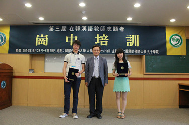 葛宝俊为我校2013级汉语国际教育硕士专业研究生,3月到我校仁川大学孔子学院下设的长期教学点江华高中任教。自赴任以来,他凭借课堂上积极、亲切的授课方式,受到学生们的普遍欢迎。此次获奖也是对他教学工作的充分肯定。通过此次活动,葛宝俊充分展示了我校孔子学院教师志愿者们的素质水平,扩大了我校仁川大学孔子学院在韩国孔子学院中的知名度和影响力,对今后孔子学院工作的展开产生积极的影响。(杜艳芬)