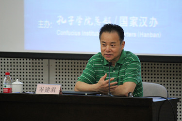 近日,由国家汉办主办、我校承办的2014年孔子学院总部/国家汉办外派汉语教师岗前培训在举行。8月1日下午,国家汉办师资处特别邀请教育部国际合作与交流司司长、港澳台办主任岑建君为学员作了题为《新形势下的国际教育交流》的讲座,前来我校为学员做赴任指导的孔子学院总部/国家汉办师资处处长赵燕清、财务一处处长侯三平、项目官员苏晨和王多力,我校校长孙玉华、副校长刘宏、全体培训学员一起聆听了岑司长的讲座。讲座由我校校长孙玉华主持。