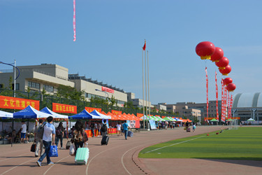 金风送爽,丹桂飘香,五十载书香大外,喜迎八方学子。在全校上下喜迎建校五十周年之际,8月30、31日,我校校园内彩旗飘扬,彩球飞舞,热烈欢迎2014级新生入学。在学校相关部门和各院系的共同努力下,2014级近3400名本科生新生顺利报到,共有近百名教工和千名学生志愿者参与了迎新工作。校领导刘玺明、孙玉华、李宝章、朱公巍、杨俊峰、刘宏,校长助理徐浩特等亲临现场,检查、指导迎新工作并向为迎新工作付出辛勤劳动的师生表示慰问和感谢。今年我校的迎新工作更加突出了“数字化、人性化”的特点,高效、便捷的迎新工作让新生和家长称赞连连。