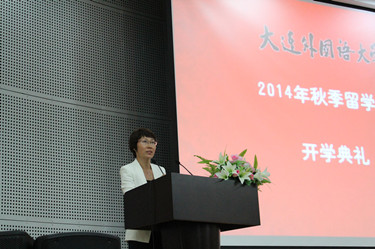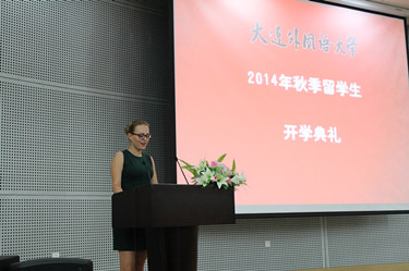 来自俄罗斯的孔子学院奖学金生娜斯佳代表新生发言。娜斯佳同学表示,她来大外之前就听到过曾在大外留学的同学对我校的描述和给予的高度评价,这使她对大外充满了好奇和向往。现在终于有机会来到了中国,来到了大连,来到了大外,她亲眼目睹了美丽的校园、干净整洁的教室、完备的生活条件,见到了亲切友好的老师和同学们。眼前这一切更坚定了她在我校学习的信念,更加深了她对中国、对大连、对大外的的热爱。