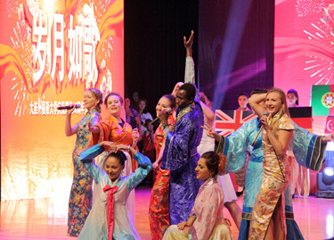 欢快的曲调,别样的深情,酝酿着经久的回忆。 折取一枝春赠予你,愿母校四季如春;折取一枝秋赠予你,愿母校桃李芬芳。 国际艺术学院学子和汉学院留学生们用自己的设计和国际友人的热情为大外唱响祝福歌曲。