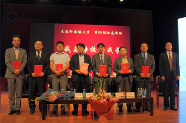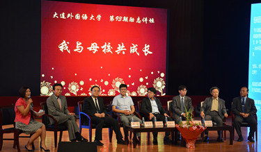 首先,唐骏先生简述了两次做客我校励志讲坛的感受和自己所参演电视剧时的趣事,在轻松的气氛中道出了“外表没那么重要,态度非常重要”的道理。此后,王武英老师、著名校友华东平、刘炳义、黄志强、翟林愉、于福功等分别回忆起了自己与母校共成长的经历。华东平作为百位校友中杰出的校友之一,他告诉学子们在一个团队中,不但要有领军者,还要有踏实做事配合的人;大学不只在于学习专业技术,同时也在于培养综合能力。在舒缓的钢琴声中,刘炳义娓娓道出自己在母校的成长,同时他称大外为自己人生的“黄埔军校”。接下来,校友黄志强、翟林愉、于福功也用自己的人生经历道出了“积土成山、积水成渊”、“求学需勤奋踏实”、“懂得节制”等道理,使各位学子受益匪浅。他们说:“从大外这里,我们收获了成绩和进步,与此同时,感恩与回报也在我们心中深深扎根。”时值母校五十年华诞,他们联合发起设立大连外国语大学第四批赴日留学生(D4)奖学金,用于资助家庭经济困难的大外学生。他们希望能够为大外尽一份心意,让更多的大外人得到关爱和成长。因为,我们和他们一样,永远都是大外人。最后,他们也表达了对母校的感恩之情!