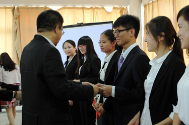 为激励在校学生的学习热情,校友基金会决定出资14000元表彰我系14名在全国法语专业四级考试中取得优秀成绩的学生。法语系86级校友、万峰基业股份有限公司总经理刘东宣读了法语系校友基金会《关于表彰法语系学生的决定》。全体受表彰的杰出校友及杰出校友分会代表为受表彰的学生颁发了奖金。