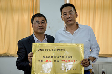 为大力支持法语系教育事业发展,鼓励学生学好法语,万代国际贸易(大连)有限公司决定向法语系捐款10万元,设立“万代奖学金”。我系86级校友、万代国际贸易(大连)有限公司总经理陶森先生与法语系副主任徐日宣先生出席了签约仪式,并共同签署了捐助协议。