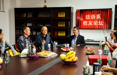 “校友座谈会”由法语系副主任徐日宣主持,老教师,校友与在校师生参加了座谈。师生共同回忆了建系四十一年事业的发展变化,谈及往日的学习生活和现今的境遇,从世界的各个角落归来的各届校友无不感慨万千。会议最后吴长勇书记、徐日宣副主任再次感谢对莅临校庆活动的各位老领导、老教师及各位校友表示了感谢,并向他们送出了真挚美好的祝福。
