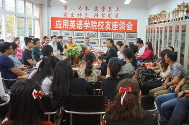 座谈会由应用英语学院党总支书记武春福主持。他首先代表应用英语学院全体师生向参加此次校庆活动的校友们表示热烈的欢迎,对校友长期以来对学院事业发展的关心与支持表示衷心的感谢!今天大家相聚在这里,既是欢庆学校建校50周年,也是将学校与学院这些年所取得的成绩向关心学校和学院发展的校友们通报,共享这份喜悦。